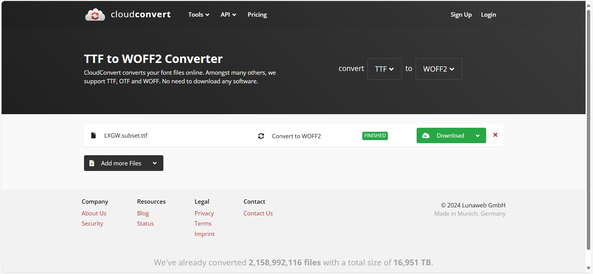 1.2 利用CloudConvert将TTF格式转换成woff2格式